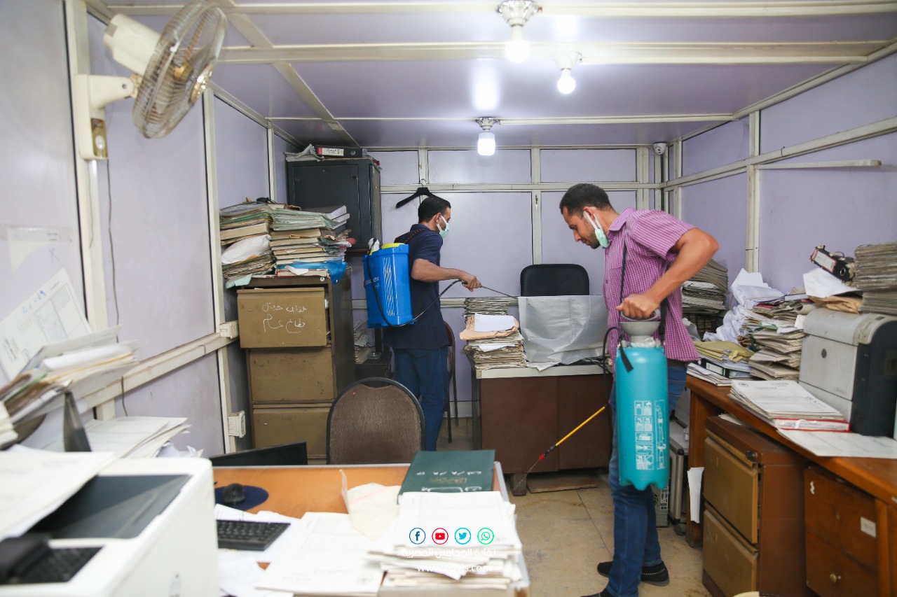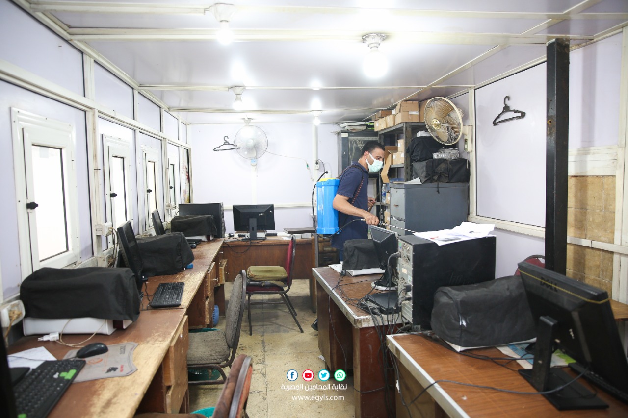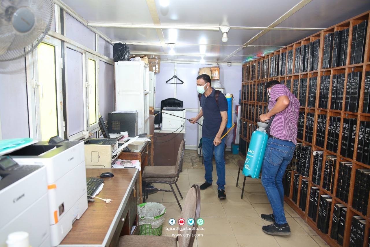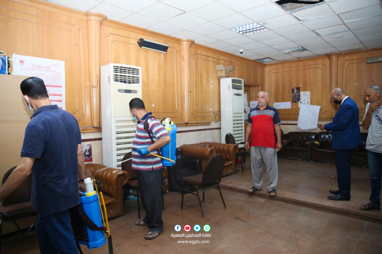نفذ وفد من المتخصصين، اليوم الأربعاء، حملة تعقيم وتطهير لمقر النقابة العامة للمحامين بشارع رمسيس، والإدارات بعمارة فايزر، وذلك حفاظا على سلامة السادة المحامين، والعاملين بالنقابة، والمترددين عليها من الجمهور، للوقاية من فيروس كورونا، تحت رعاية نقيب المحامين الأستاذ رجائي عطية.
